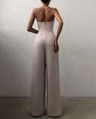 يجعل هذا البدلة الضيقة الشكل يبرز القوام بفضل خصرها العالي الجذاب. تضيف حمالاتها الرقيقة لمسة أنيقة وأنثوية. مثالية لمظهر مرتب، من الحياة اليومية إلى المناسبات الرسمية.