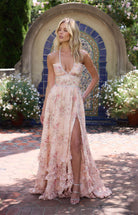 تسحر هذه الفستان الطويل المزخرف بملامحها السائلة والأنثوية. يضيف ظهرها المكشوف مع الأشرطة الرفيعة لمسة هوائية ورقيقة، مثالية للأيام المشمسة كما للأمسيات الرومانسية. خفيفة ورقيقة، تجسد تمامًا روح البوهيمية الأنيقة.