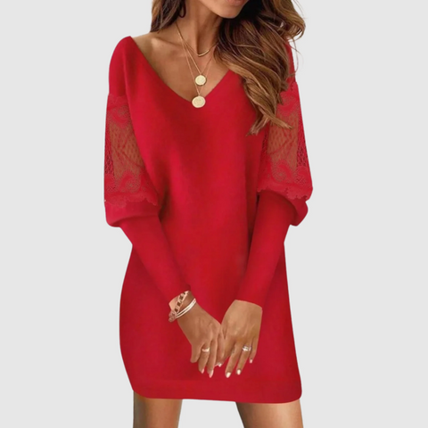 ليا | فستان قصير بأكمام طويلة مع فتحة عنق على شكل V