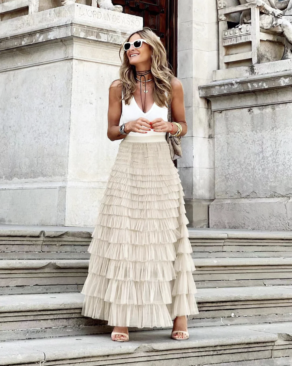 إليز | تنورة رومانسية ذات كشكش لشكل أنيق