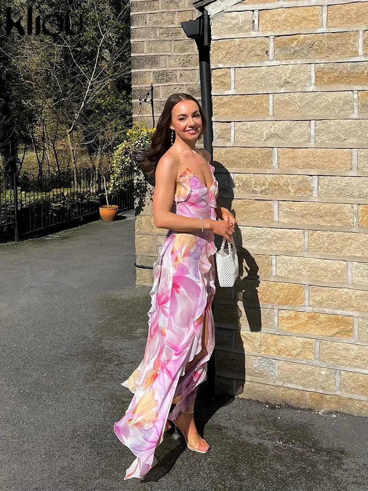 أديلين | فستان طويل مطبوع بالأزهار من التول المنشق - أناقة ورقي