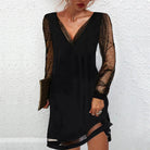 تسحر هذه الفستان المتوسطة الطول بفضل ياقة V الأنيقة وأكمامها الشفافة بدقة مع لمسات راقية. يبرز قصتها السائلة القوام بينما يوفر راحة مريحة. مثالية للمناسبات أو الخروج الأنيق، تجمع بين الأسلوب والخفة.