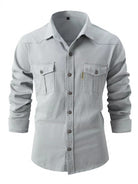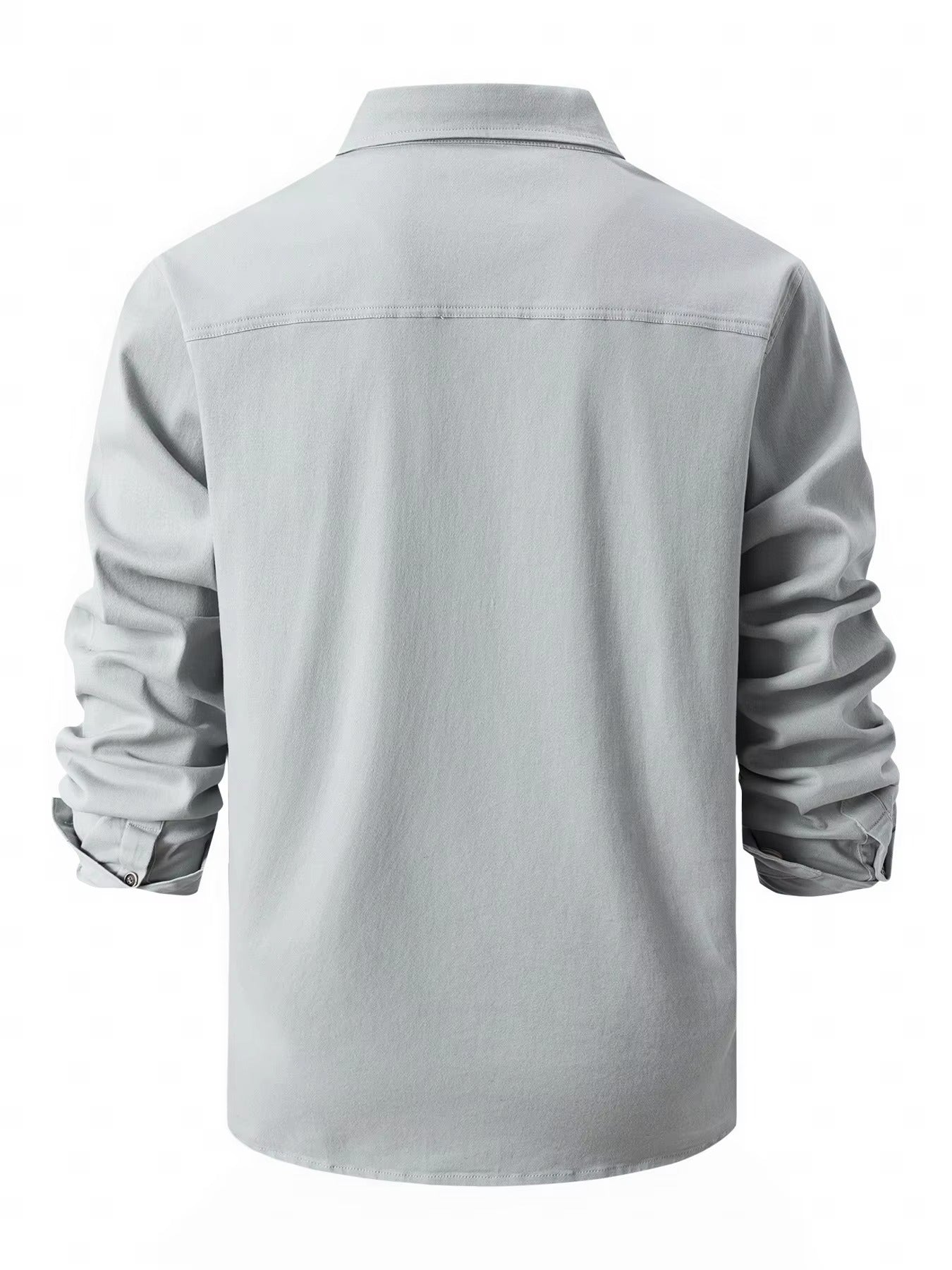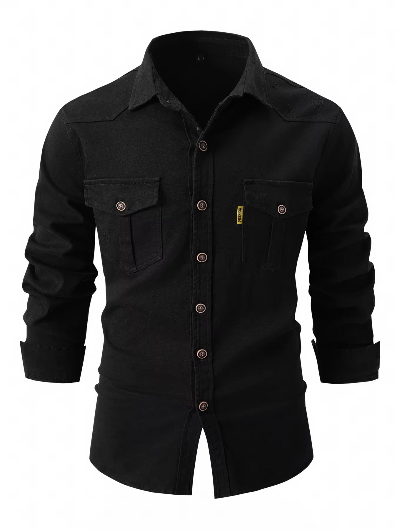 هذه القميص ذو الأكمام الطويلة مصنوعة من الجينز بألوان متباينة. يتميز بياقة كلاسيكية وأزرار مركزية، مما يوفر أسلوبًا هيكليًا ومريحًا. تضيف الجيوب ذات الأغطية على الصدر بُعدًا عمليًا. تناسب قصته النظيفة مجموعة متنوعة من المناسبات، من الاستخدام اليومي إلى الخروجات الأكثر رسمية.