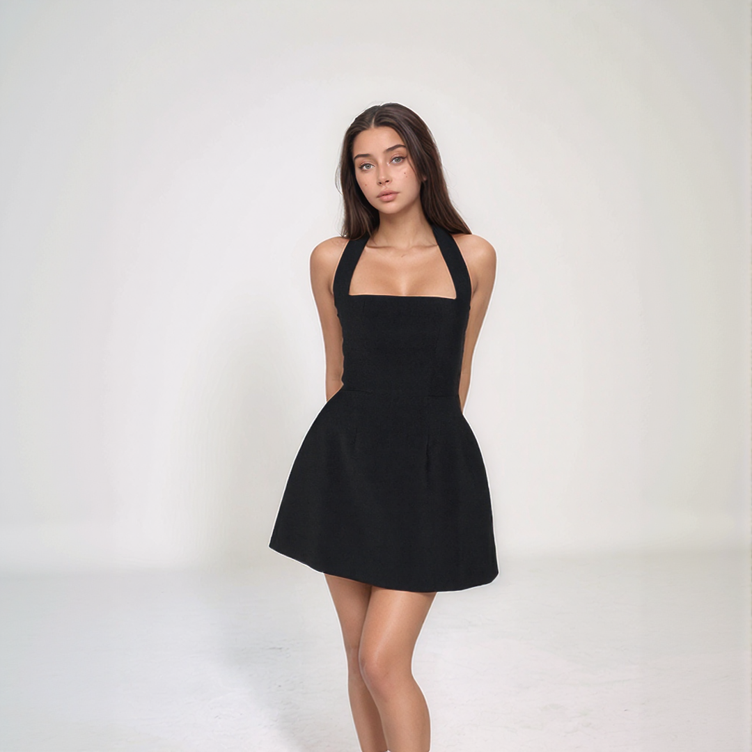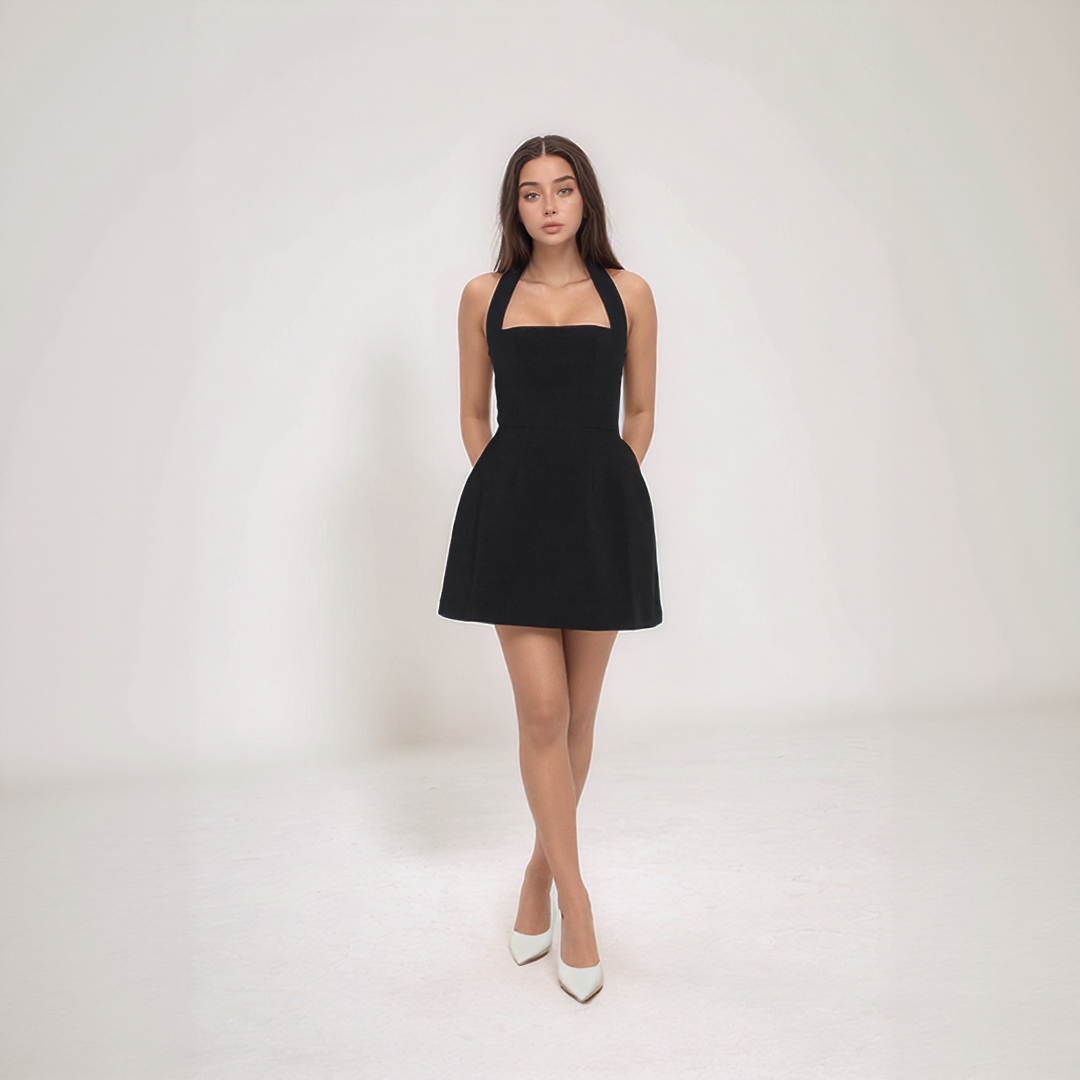Sandra | Mini Sommerkleid – Dekolleté Halter und fließendes Volumen