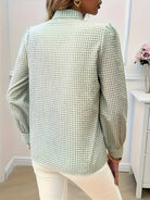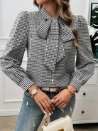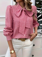 Αυτή η μπλούζα διαθέτει ένα διαχρονικό καρό σχέδιο που αναδεικνύεται από μια κομψή λεπτομέρεια φιόγκος. Τα μακριά μανίκια την καθιστούν ιδανική για όλες τις εποχές. Εύκολη στο συνδυασμό, είναι κατάλληλη τόσο για χαλαρές όσο και για επαγγελματικές περιστάσεις.