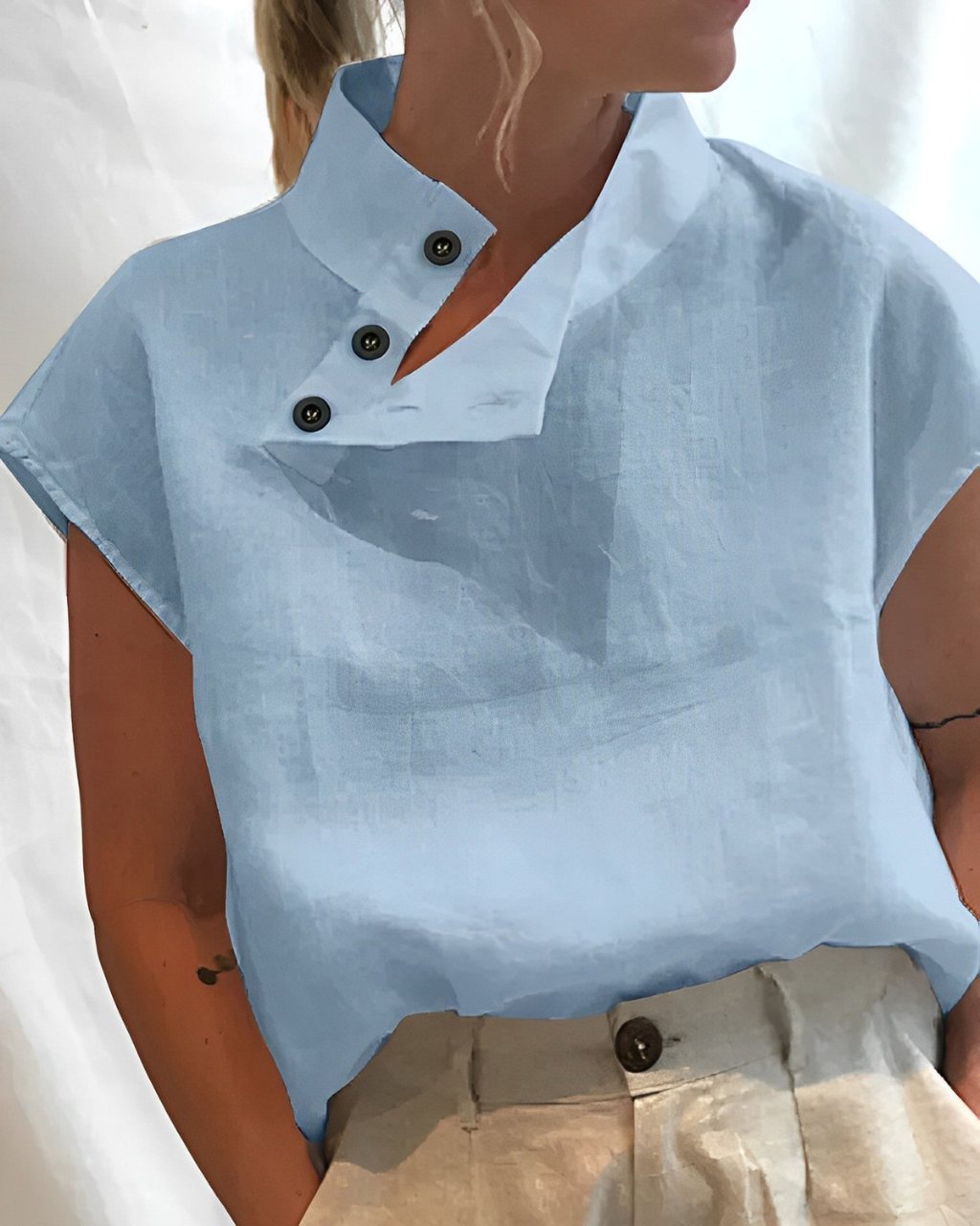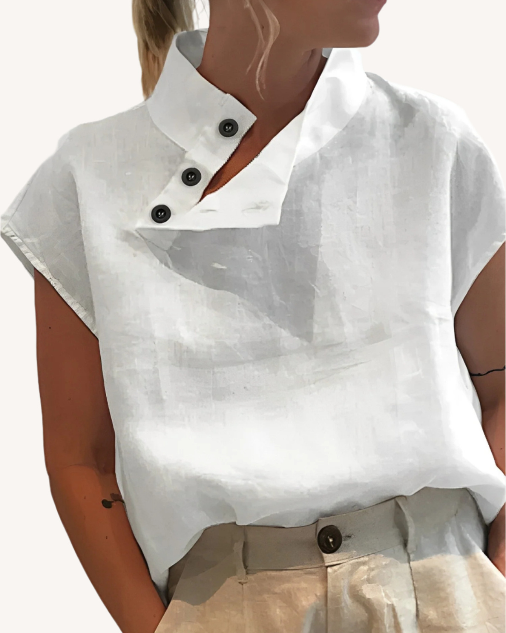 WHY CHOOSE THE WOMEN'S SHORT SLEEVE BLOUSE WITH HIGH COLLAR?