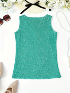 Tämä hihaton toppi esittelee imartelevan V-pääntien. Täysin paljeteilla koristeltuna se tuo säihkettä asuusi. Täydellinen juhlatilaisuuksiin tai rentoon ilmeeseen.