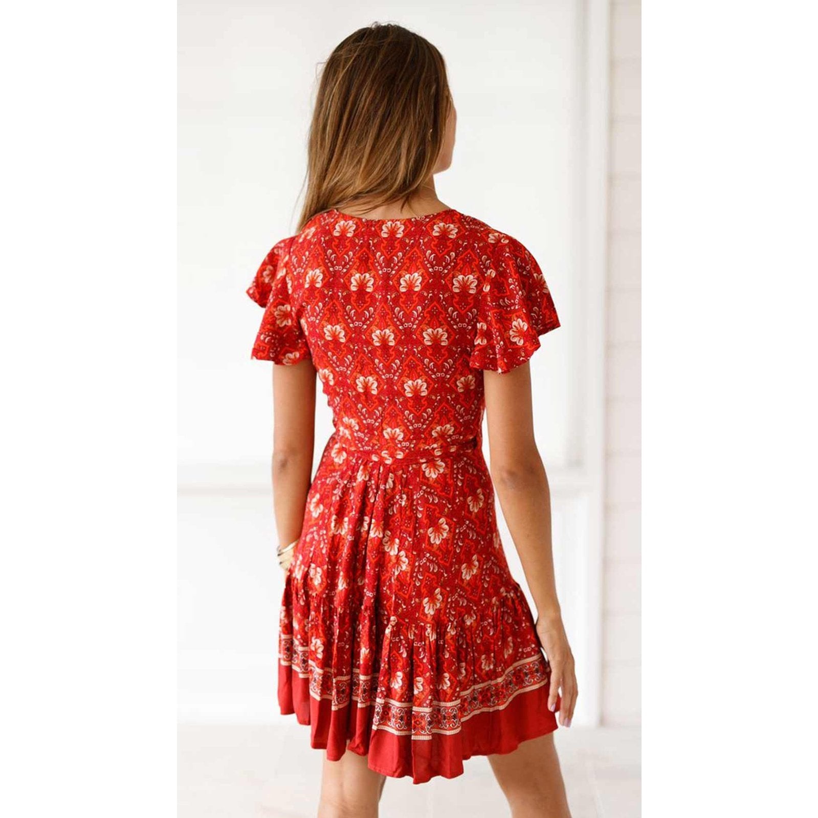 アンドレア | ボヘミアンシックロングドレス – エレガンスレッドとロマンティックな精神