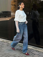 メイ | パンツファッション – リラックスしたカットと光沢のある仕上げ