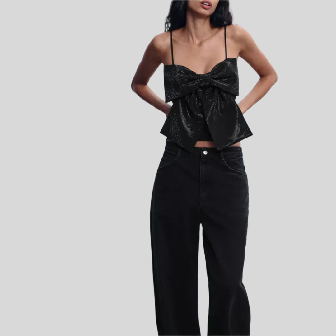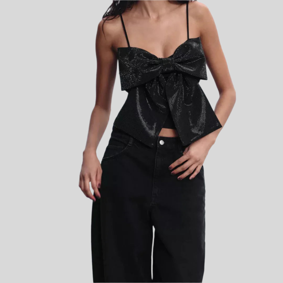 Isidore | Hoge Dames Top Met Glanzende Knoop