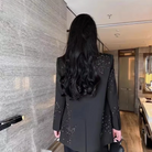Denna svarta jacka förkroppsligar modern elegans med en touch av subtil glans. Dess glittrande detaljer ger en raffinerad ton till din stil, utan att någonsin bli för mycket. Perfekt för en chic kväll eller en distingerad professionell look, förenar den enkelhet och glans.